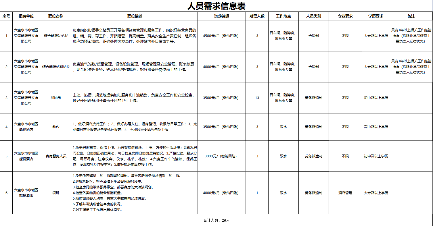 六盤水市水城區(qū)能投實(shí)業(yè)(集團(tuán))有限公司面向社會(huì)公開(kāi)招聘26名工作人員