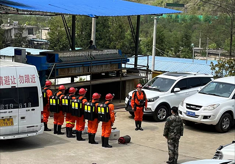 14時32分救護(hù)隊接到召請電話,立即組織出動,于14時48分到達(dá)礦井,初步了解事故情況后,向指揮部領(lǐng)取救援任務(wù),按照指揮部的指令,迅速開展搶險救災(zāi)工作。