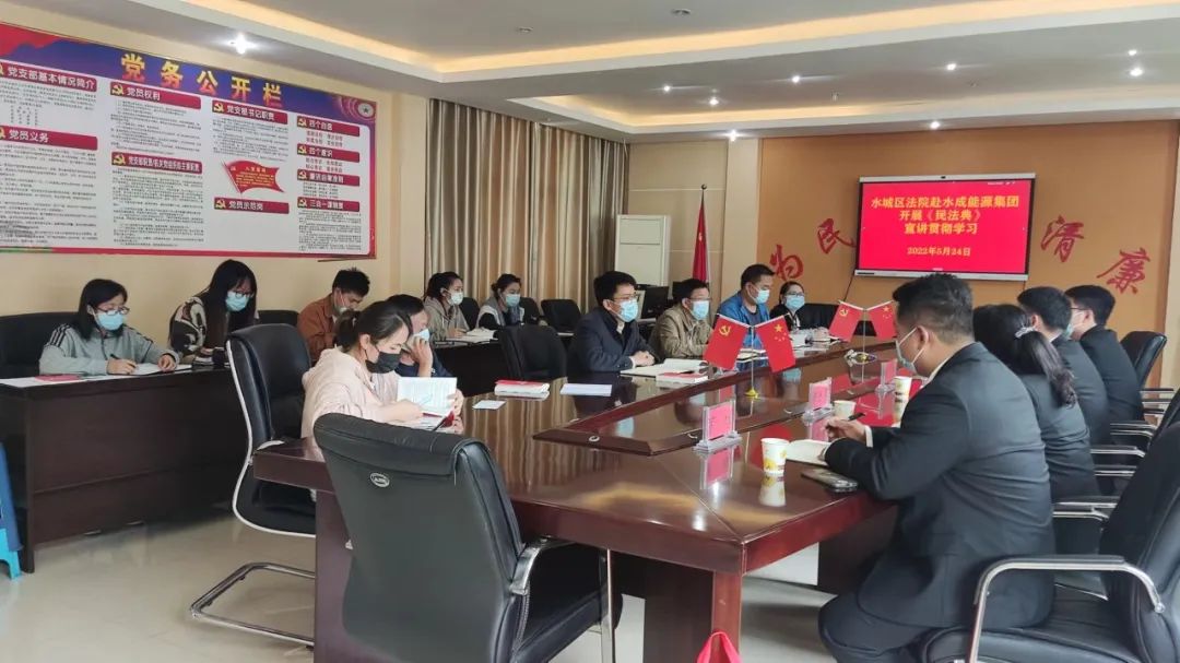 5月24日,水城區(qū)人民法院聯(lián)合貴州水成能源(集團)有限責任公司開展“普法進企業(yè)”活動,專題宣講《中華人民共和國民法典》,發(fā)放民法典讀本,現(xiàn)場解答法律問題。